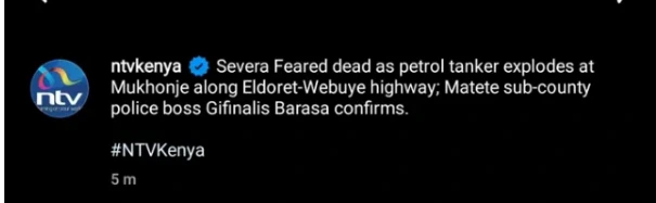 There have been various fatal accidents that have been witnessed in the country and the entire world.It was a sad moment in Uasin Gishu County along Eldoret-Webuye road where two petrol tanks were involved in accident that led to explosion.